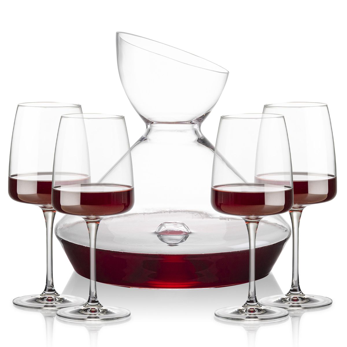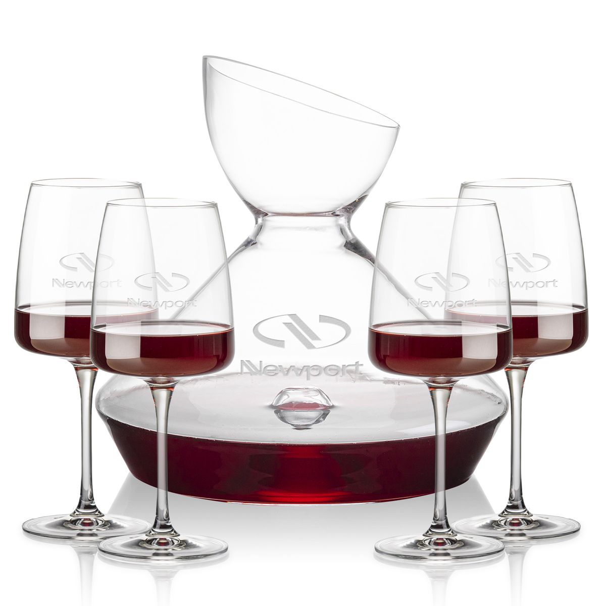 Rest assured, the Woodbury Carafe and wine glasses set will make a statement of elegance changing the ambiance from the simplest affair to an upscale event. The highlight of this set is its carafe with punt and funnel-shaped opening that allows for controlled and gentle pouring of the wine into the carafe. The carafe is paired with your choice of 2 or 4 wine glasses. Other wine glass styles available.