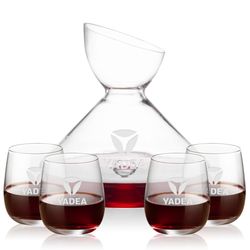 Rest assured, the Woodbury Carafe and wine glasses set will make a statement of elegance changing the ambiance from the simplest affair to an upscale event. The highlight of this set is its carafe with punt and funnel-shaped opening that allows for controlled and gentle pouring of the wine into the carafe. The carafe is paired with your choice of 2 or 4 stemless wine glasses. Other wine glass styles available.
